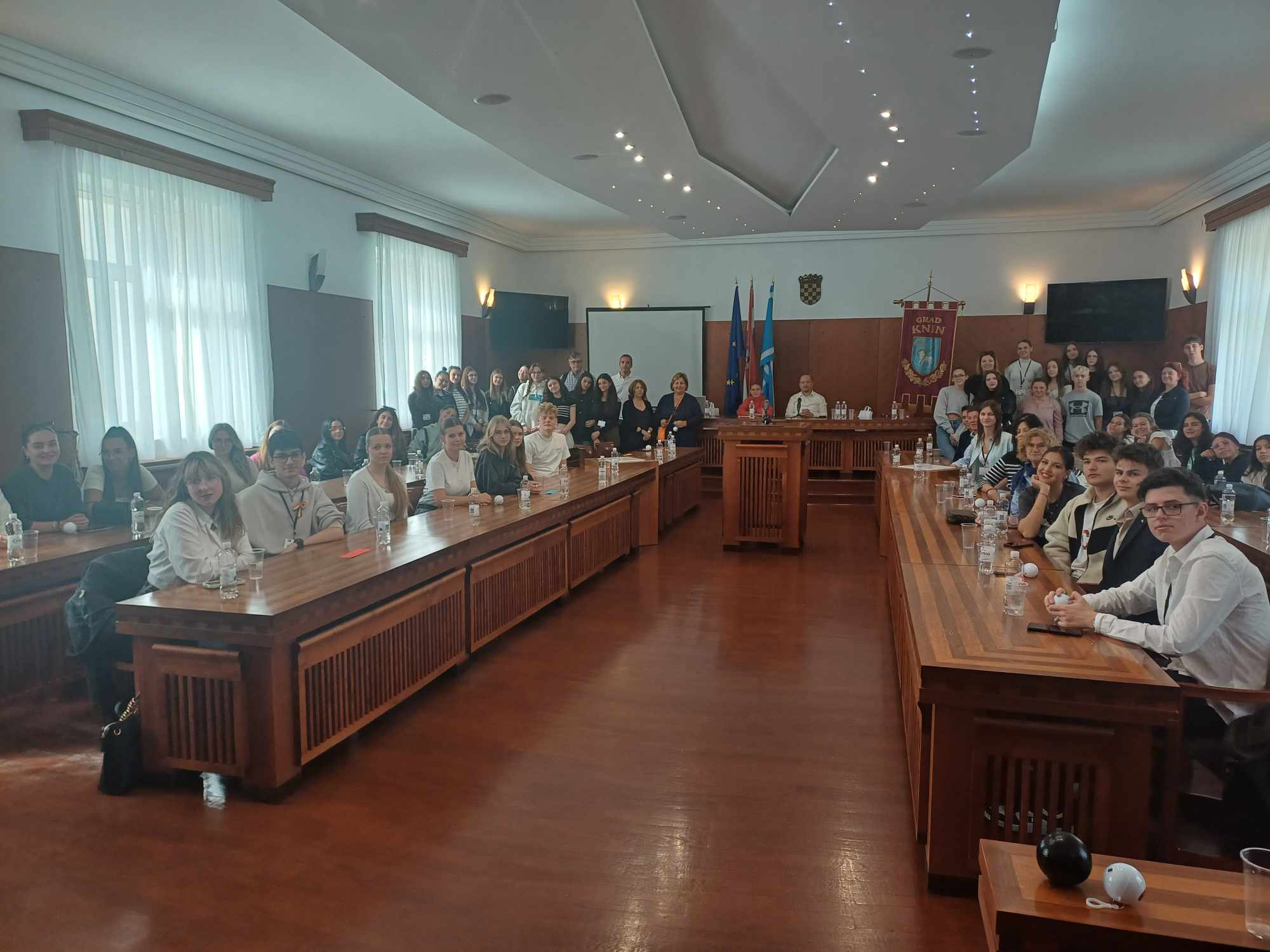Gradonačelnik grada Knina Marijo Ćaćić, srdačno je ugostio 50 učenika i 14 nastavnika iz partnerskih škola u Gradskoj vijećnici. Tijekom susreta, učenici su postavljali pitanja o važnim temama poput suživota različitih kultura, utjecaja Europske unije na život građana Knina te budućnosti mladih u Kninu.