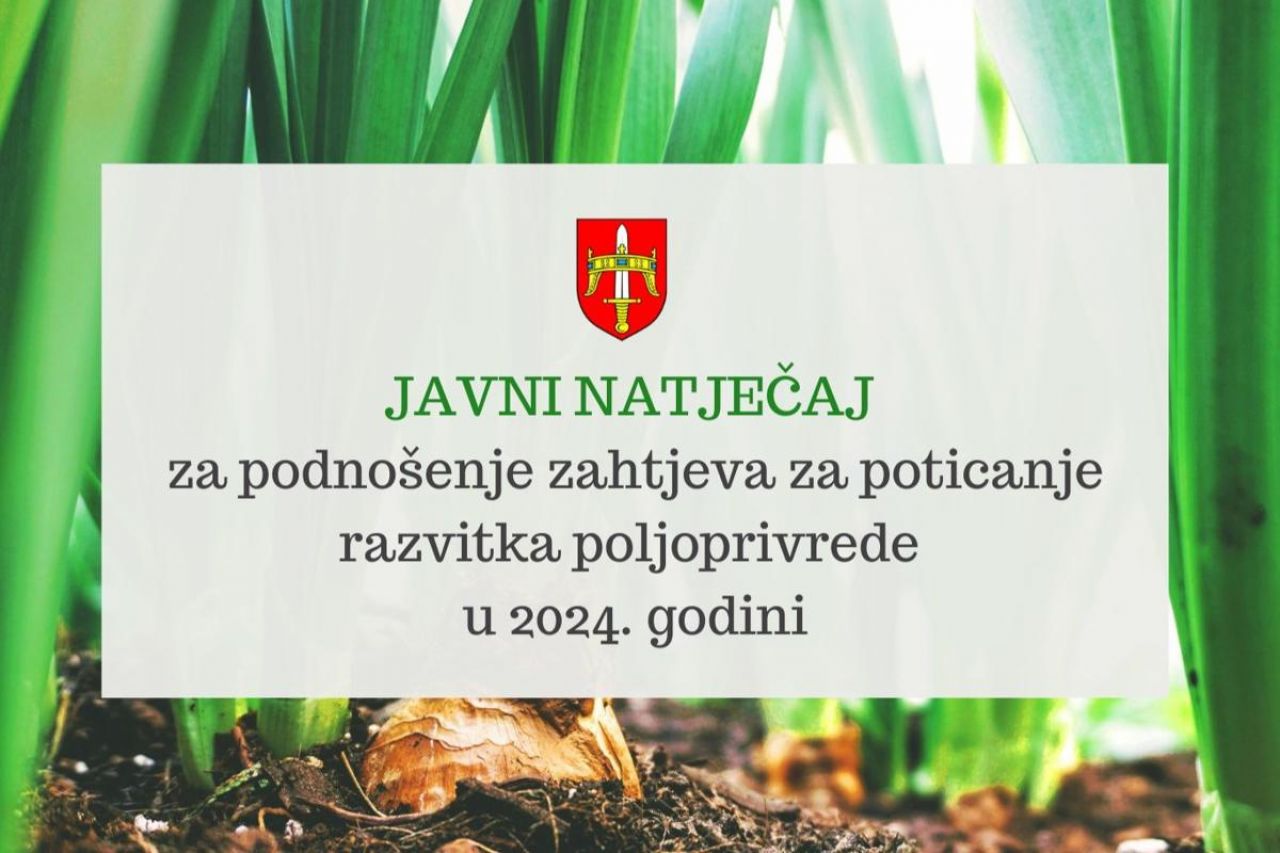 Objavljen Javni natječaj za podnošenje zahtjeva za poticanje razvitka poljoprivrede u 2024. godini