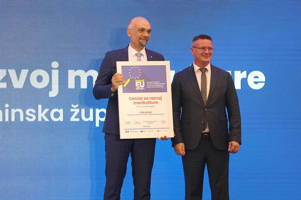 Projekt izgradnje i opremanja „Centra za razvoj marikulture“ proglašen je pobjednikom u svojoj kategoriji, a plaketu za osvojeno prvo mjesto uime Šibensko-kninske županije preuzeo je župan, dr. sc. Marko Jelić.